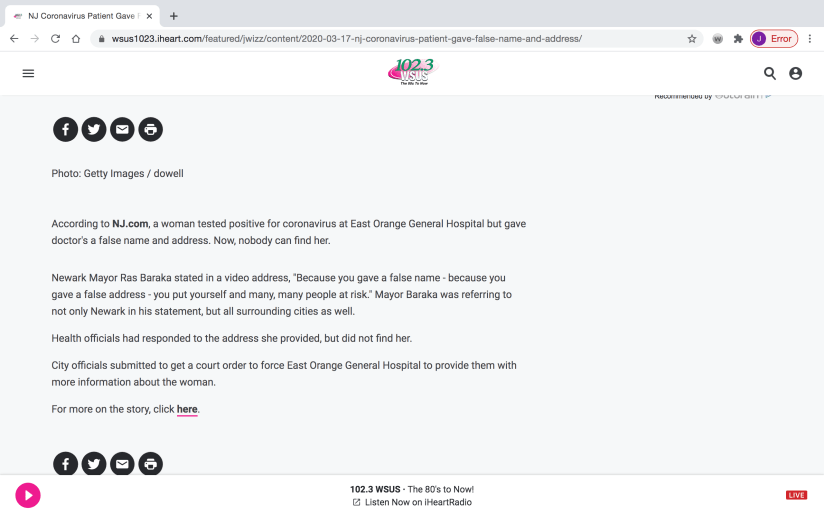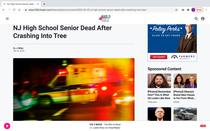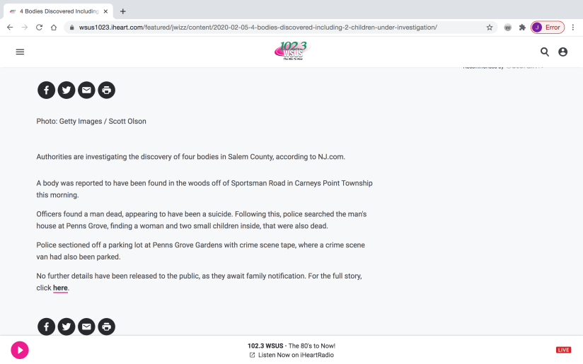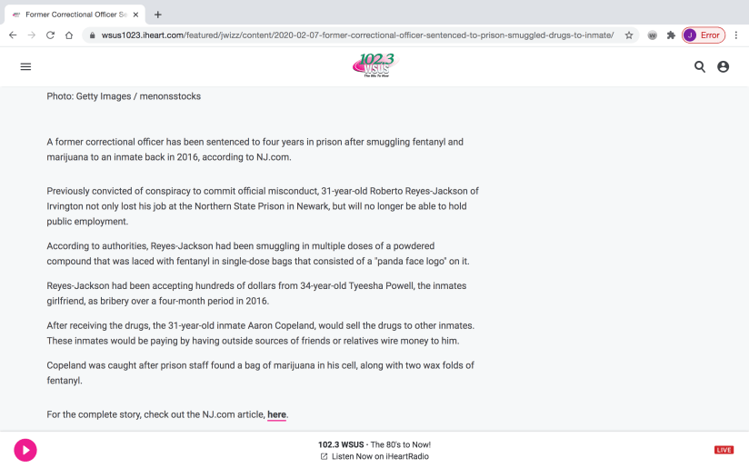 During my employment with iHeartMedia, I often wrote blogs for the WNNJ-FM 103.7, WSUS-FM 102.3 and WHCY-FM 106.3 websites, whether hard news, soft news and feel good stories along with an occasional national/international story.